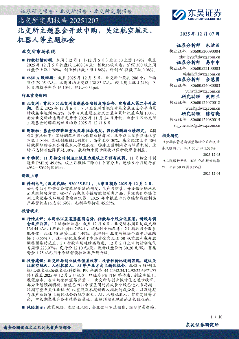 东吴证券-北交所定期报告:北交所主题基金开放申购,关注航空航天、机器人等主题机会-251207