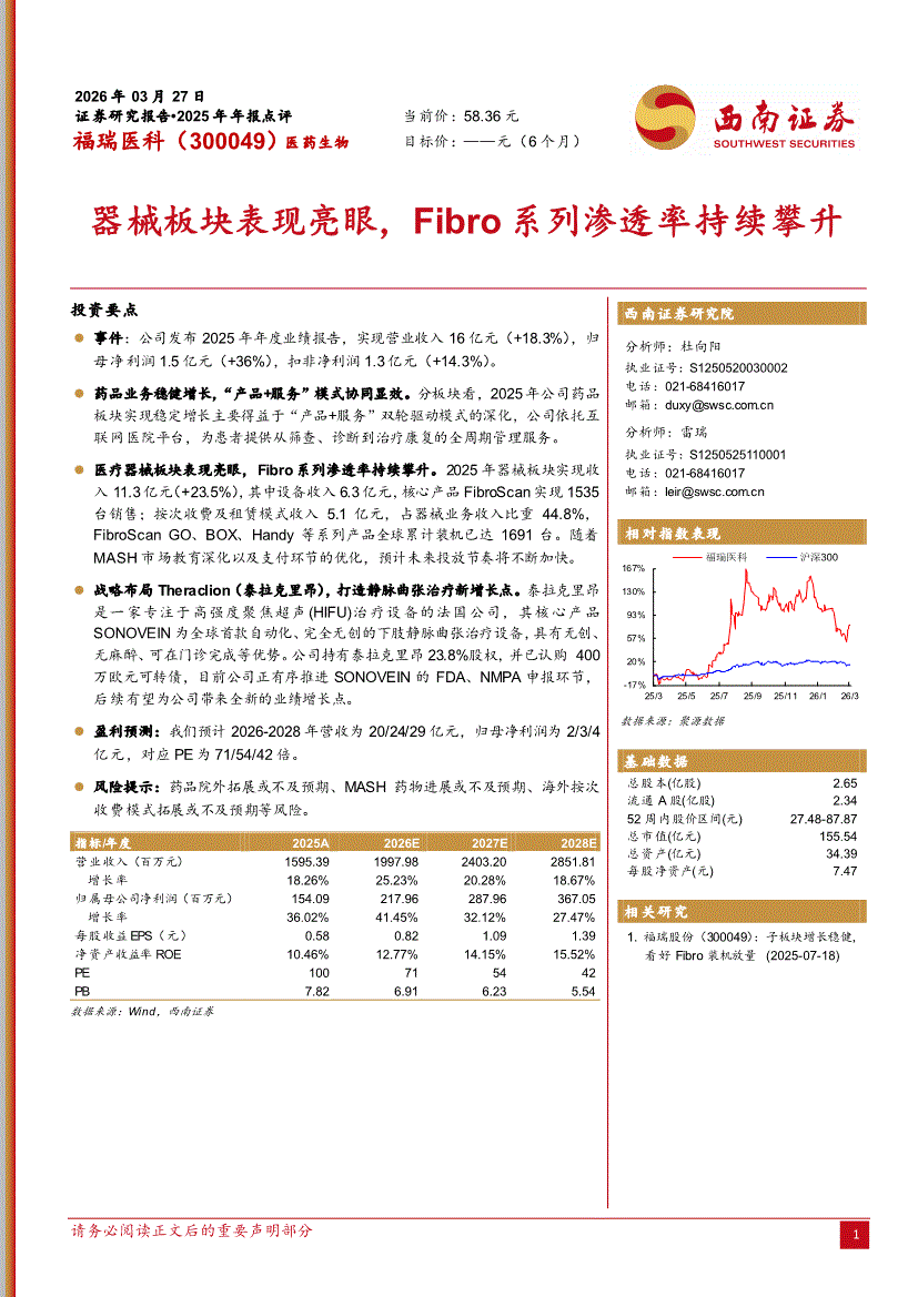福瑞医科:西南证券-福瑞医科-300049-器械板块表现亮眼,Fibro系列渗透率持续攀升-260327