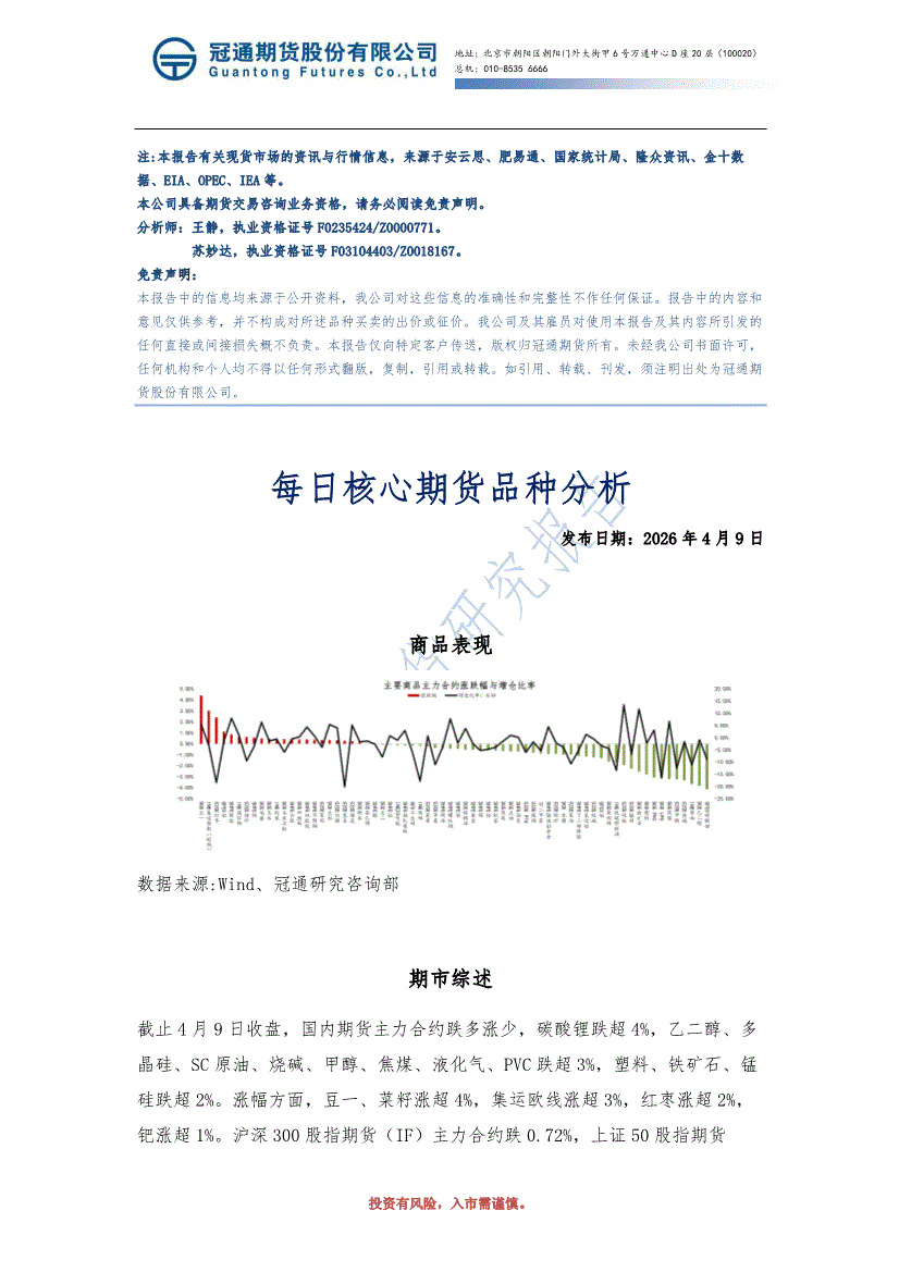 冠通期货-每日核心期货品种分析-260409