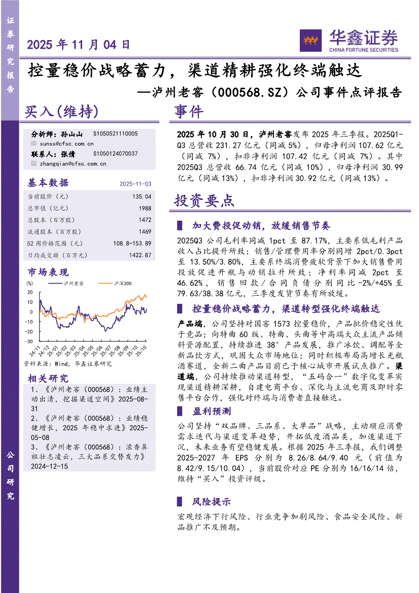 泸州老窖:华鑫证券-泸州老窖-000568-公司事件点评报告:控量稳价战略蓄力,渠道精耕强化终端触达-251104