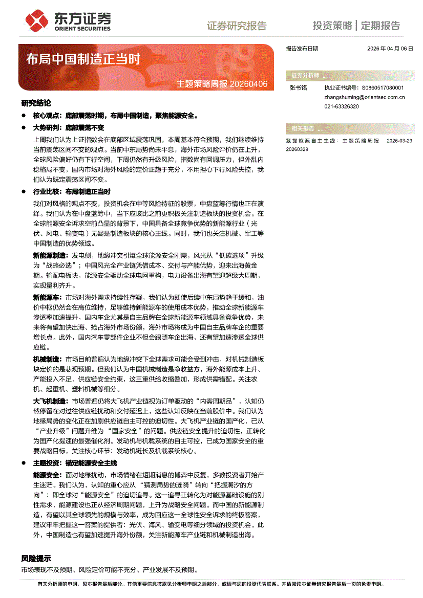 东方证券-主题策略周报:布局中国制造正当时-260406