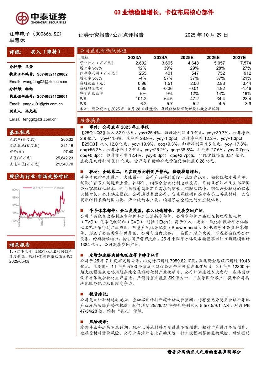 江丰电子:中泰证券-江丰电子-300666-Q3业绩稳健增长,卡位布局核心部件-251029