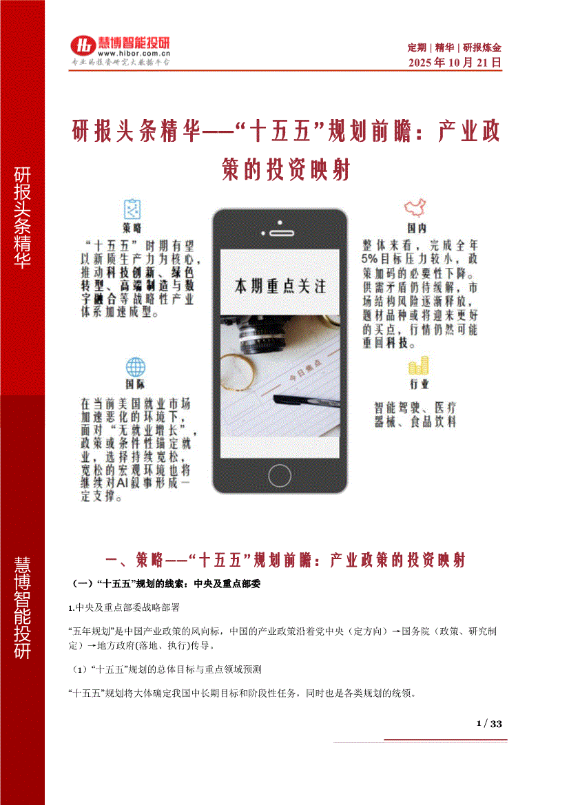 慧博智能投研-慧博研报炼金之研报头条精华:“十五五”规划前瞻,产业政策的投资映射-251021