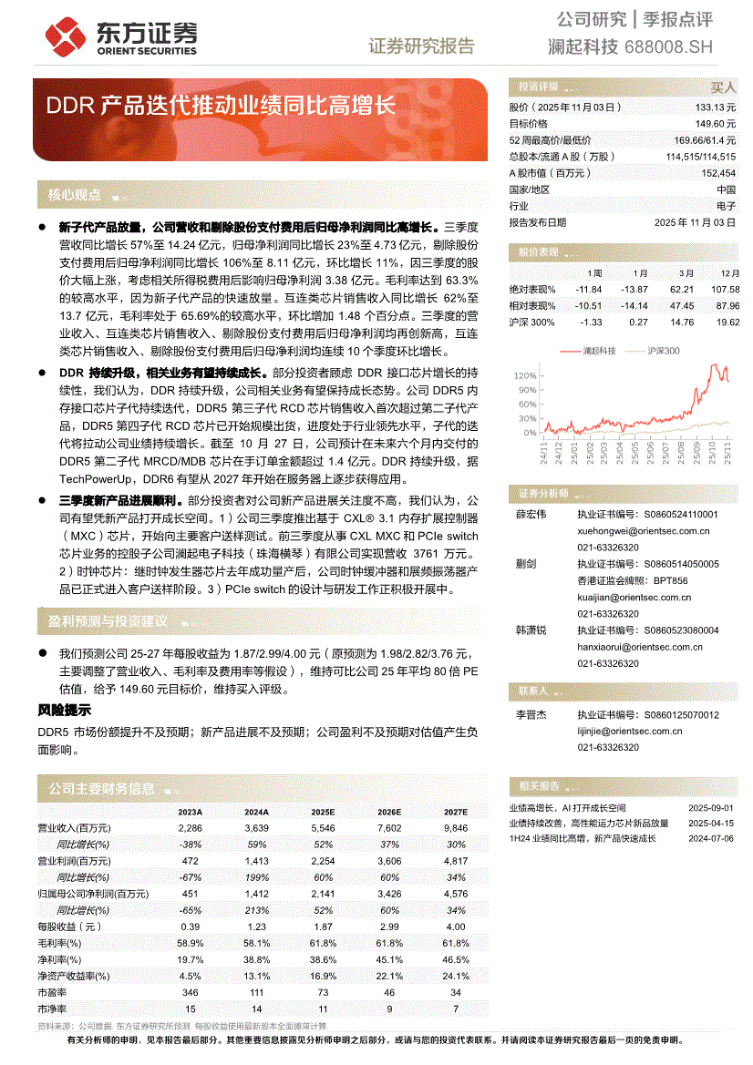 澜起科技:东方证券-澜起科技-688008-DDR产品迭代推动业绩同比高增长-251103