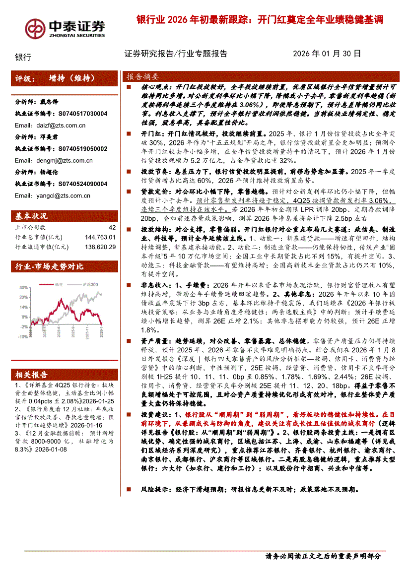 银行业:中泰证券-银行业2026年初最新跟踪:开门红奠定全年业绩稳健基调-260130