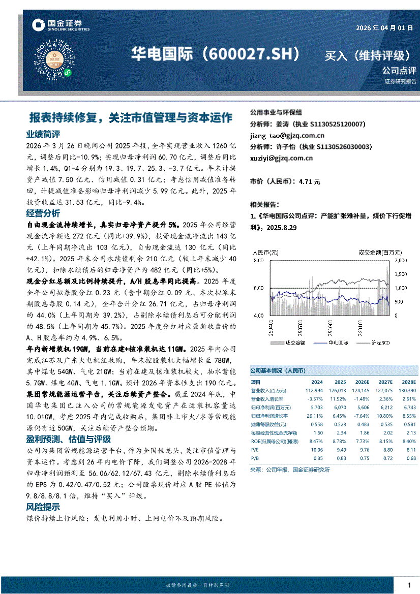 华电国际:国金证券-华电国际-600027-报表持续修复,关注市值管理与资本运作-260401
