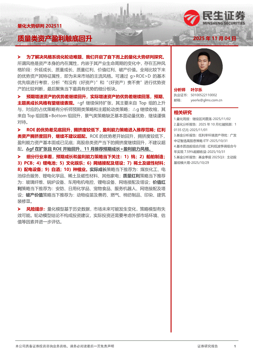 民生证券-量化大势研判:质量类资产盈利触底回升-251104