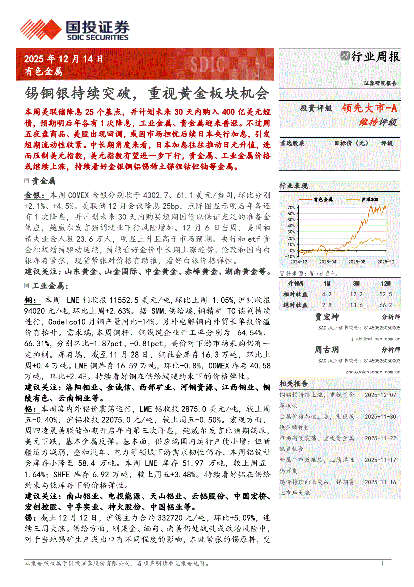 有色金属行业:国投证券-有色金属行业周报:锡铜银持续突破,重视黄金板块机会-251214