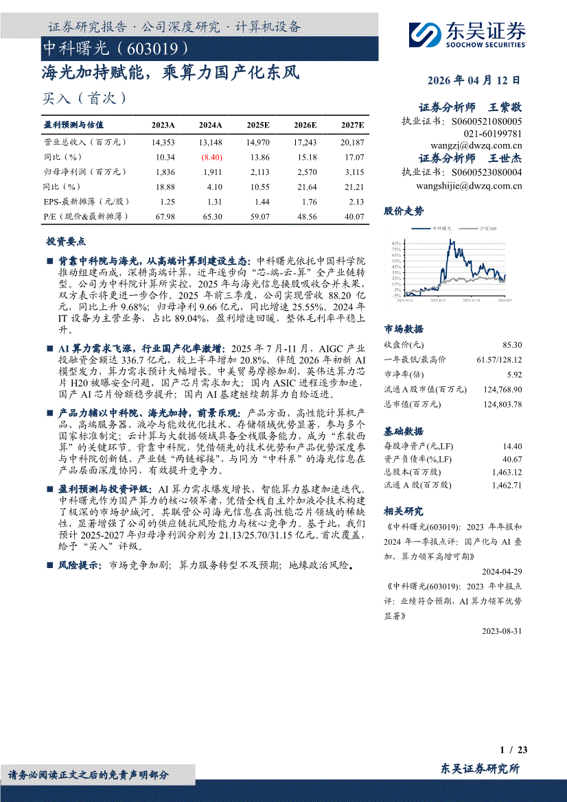 中科曙光:东吴证券-中科曙光-603019-海光加持赋能,乘算力国产化东风-260412