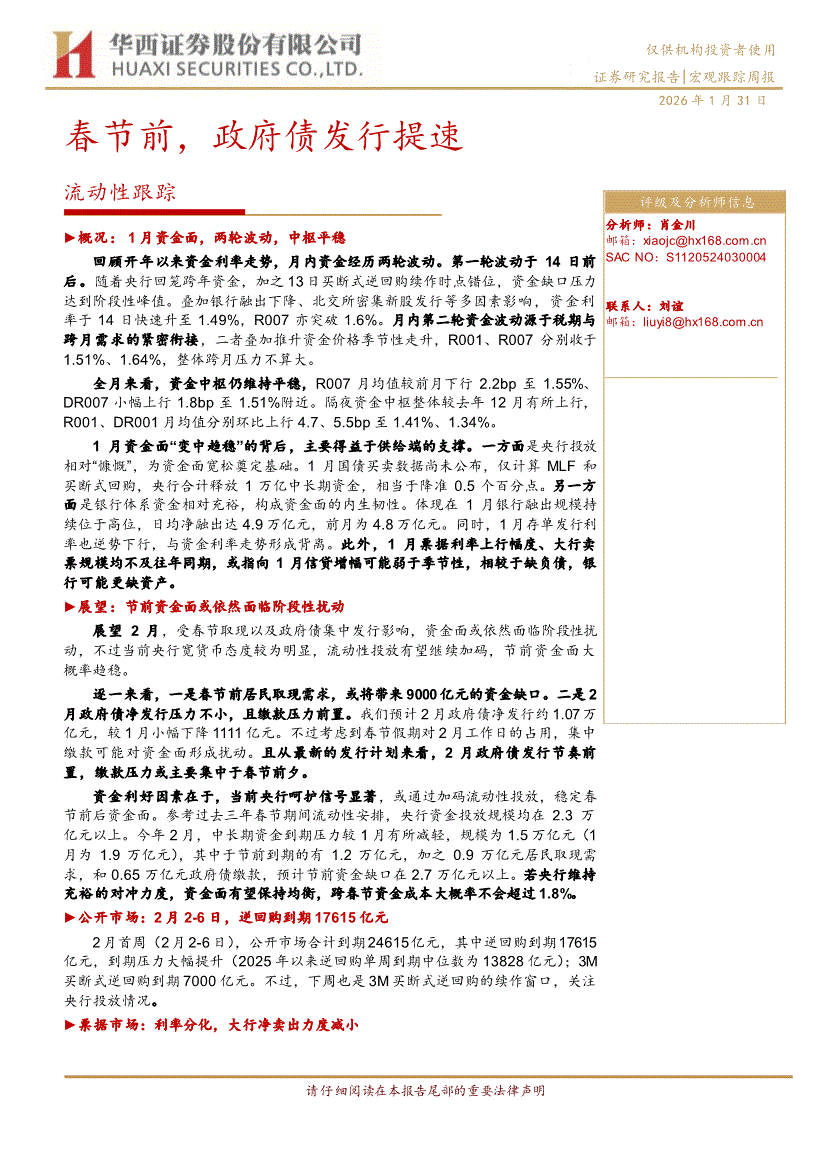 华西证券-流动性跟踪:春节前,政府债发行提速-260131