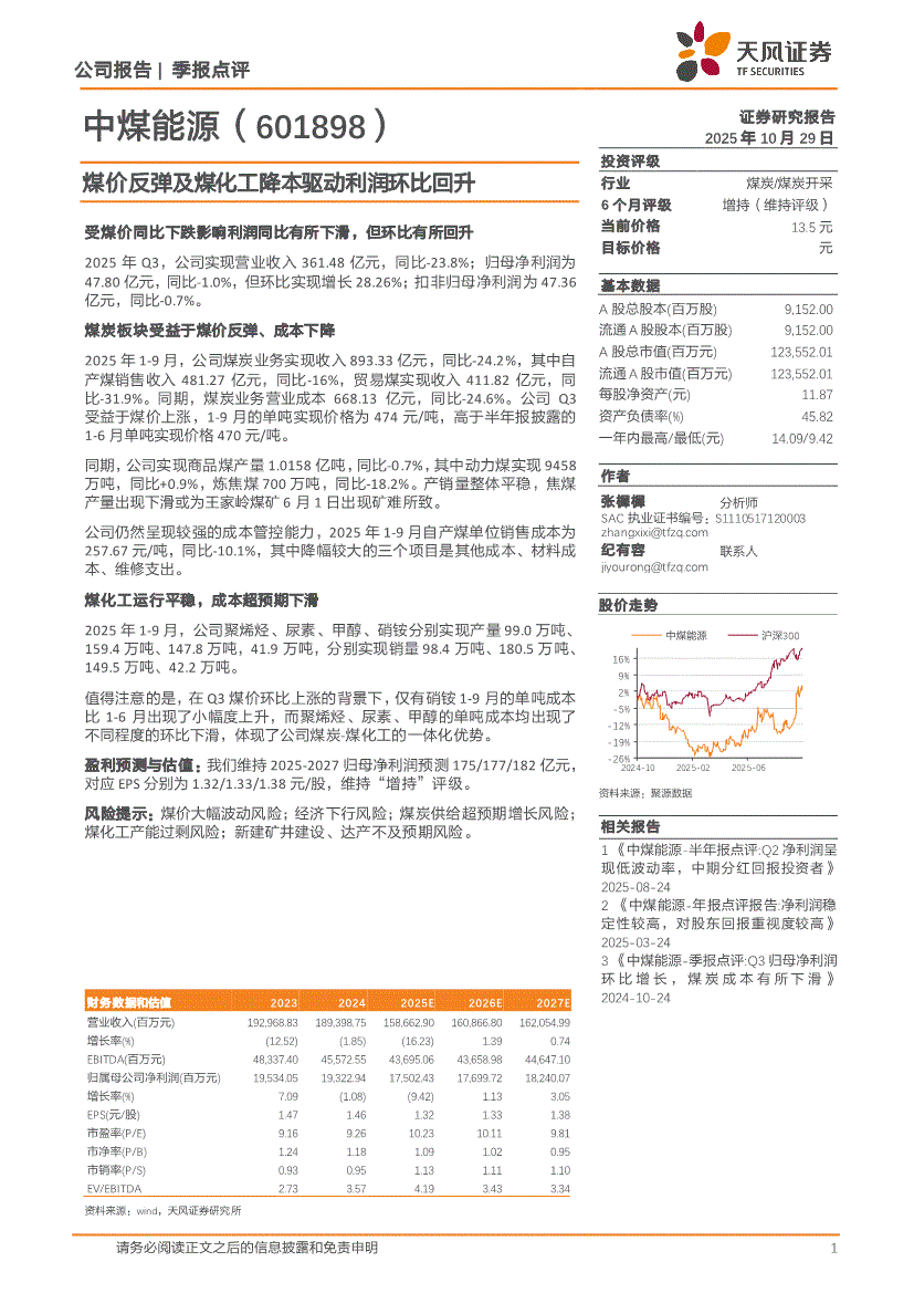 中煤能源:天风证券-中煤能源-601898-煤价反弹及煤化工降本驱动利润环比回升-251029