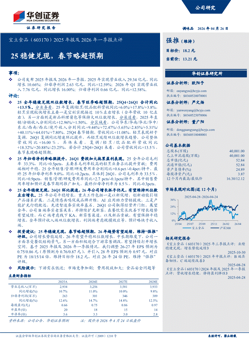 宝立食品:华创证券-宝立食品-603170-2025年报及2026年一季报点评:25稳健兑现,春节略超预期-260426