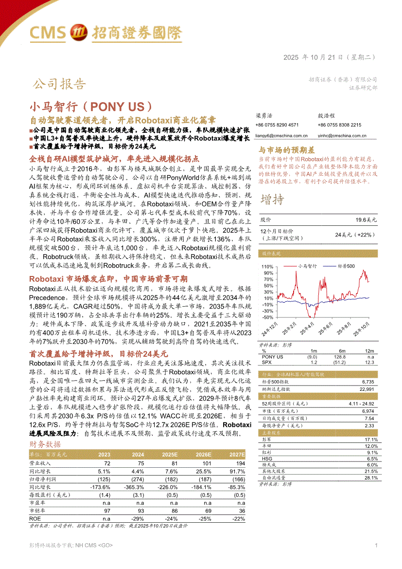 小马智行:招商证券(香港)-小马智行-PONY.US-自动驾驶赛道领先者,开启Robotaxi商业化篇章-251021