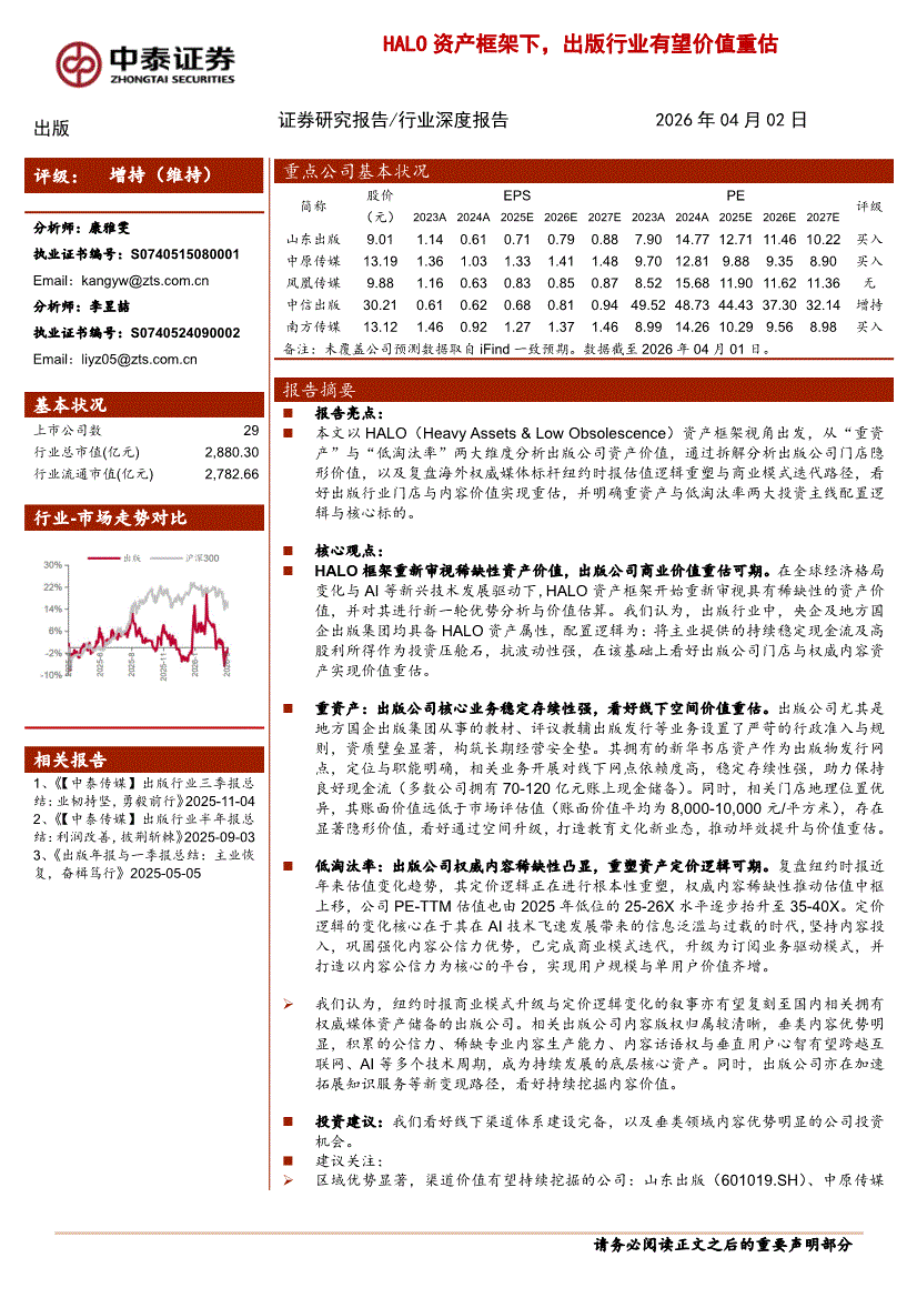 出版行业:中泰证券-出版行业深度报告:HALO资产框架下,出版行业有望价值重估-260402