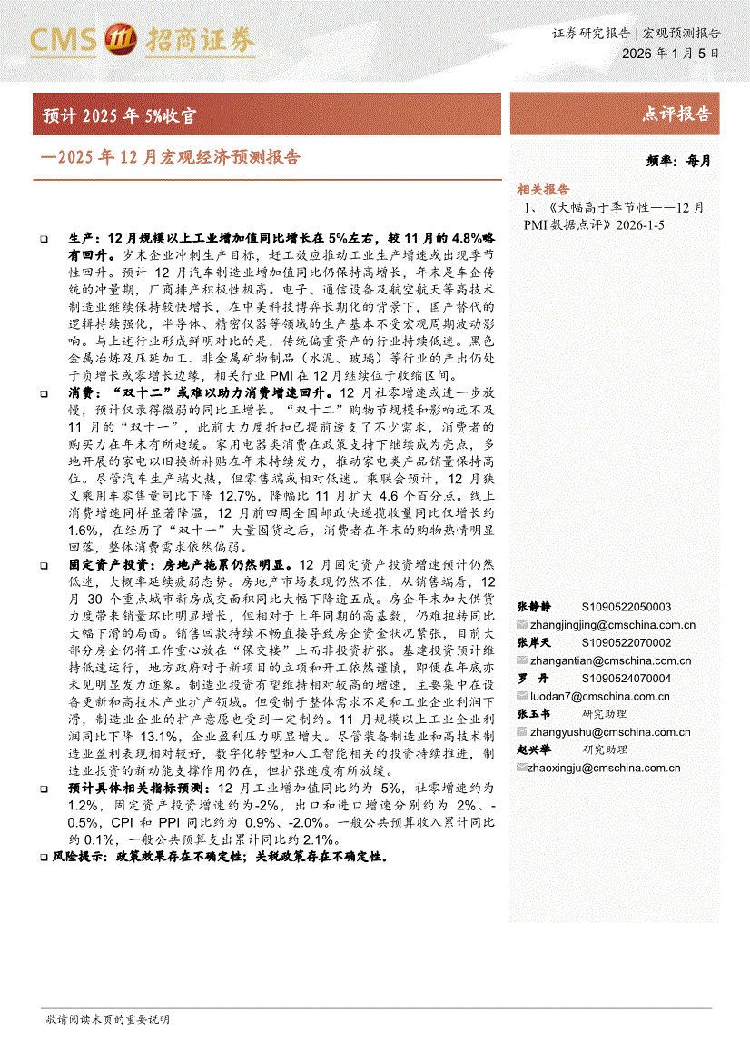 招商证券-2025年12月宏观经济预测报告:预计2025年5%收官-260105
