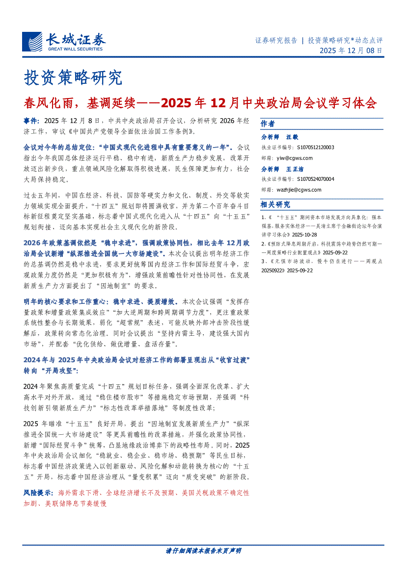 长城证券-投资策略研究:春风化雨,基调延续——2025年12月中央政治局会议学习体会-251208