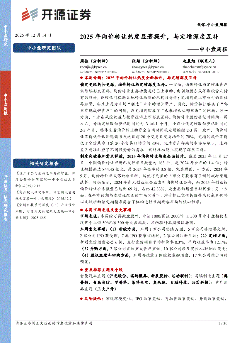 开源证券-中小盘周报:2025年询价转让热度显著提升,与定增深度互补-251214