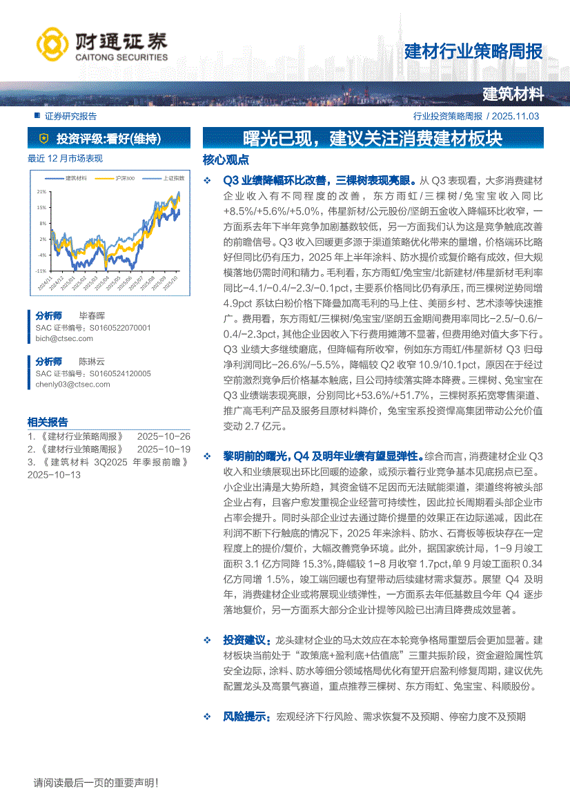 建材行业:财通证券-建材行业策略周报:曙光已现,建议关注消费建材板块-251103