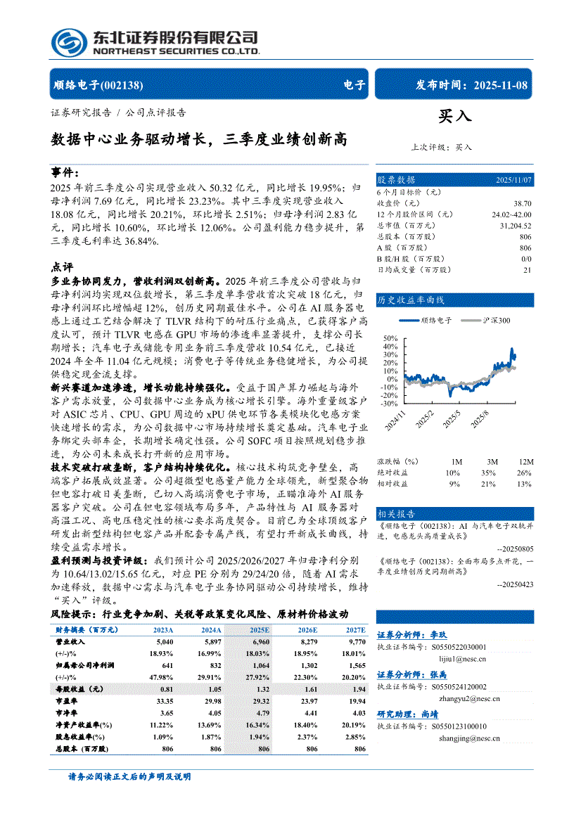 顺络电子:东北证券-顺络电子-002138-数据中心业务驱动增长,三季度业绩创新高-251108