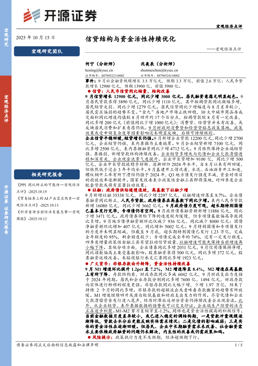 开源证券-宏观经济点评:信贷结构与资金活性持续优化-251015