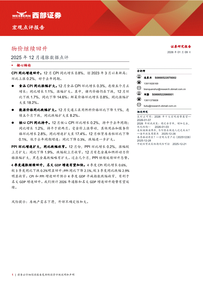 西部证券-2025年12月通胀数据点评:物价继续回升-260109