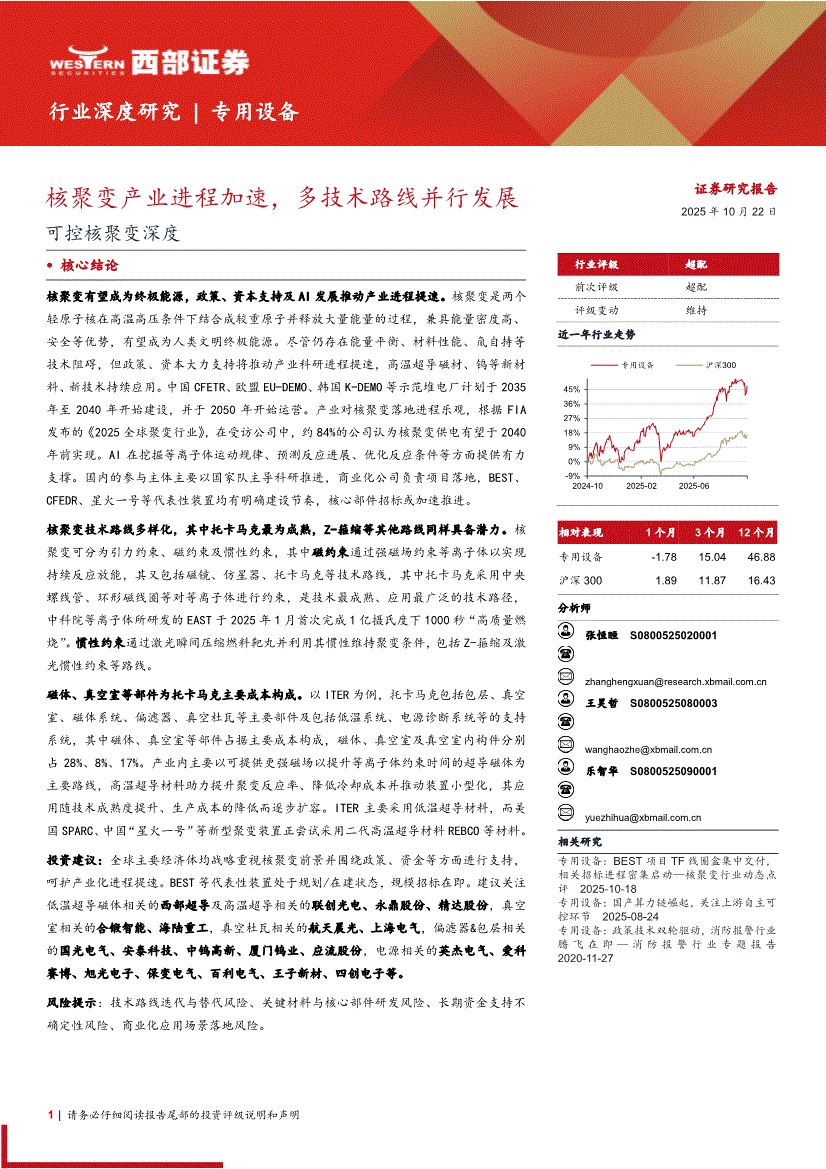 专用设备行业:西部证券-专用设备行业可控核聚变深度:核聚变产业进程加速,多技术路线并行发展-251022