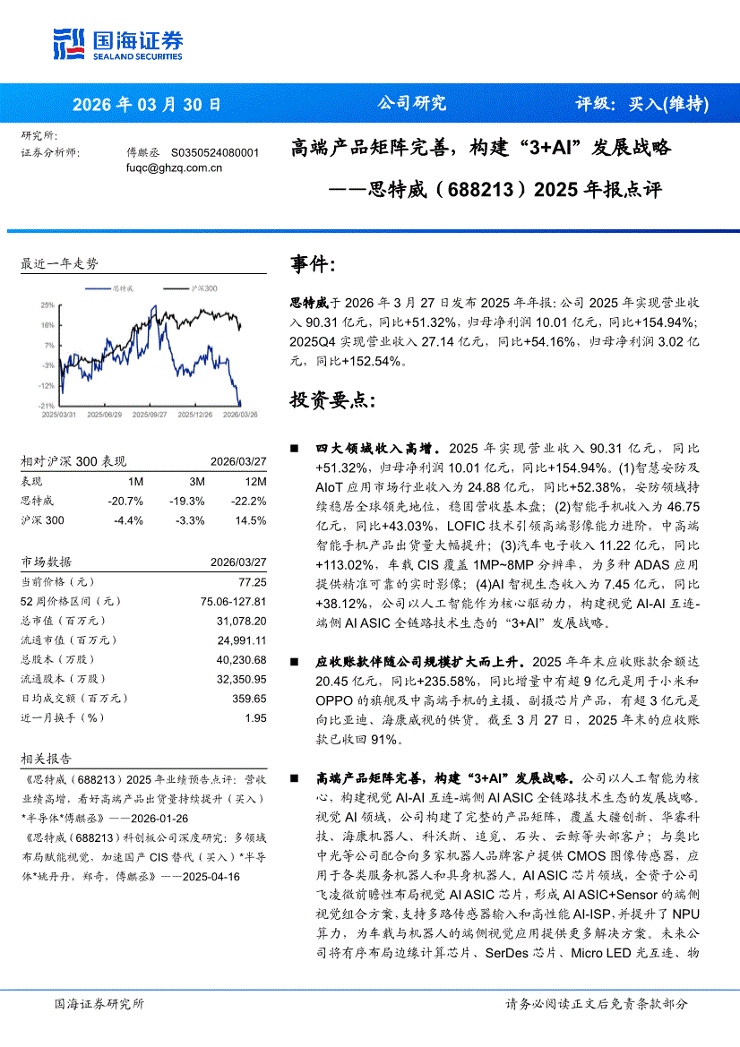 思特威:国海证券-思特威-688213-2025年报点评:高端产品矩阵完善,构建“3+AI”发展战略-260330