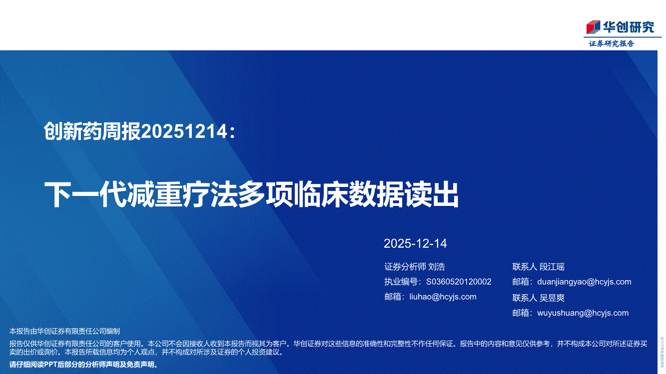 医药行业:华创证券-医药行业创新药周报:下一代减重疗法多项临床数据读出-251214