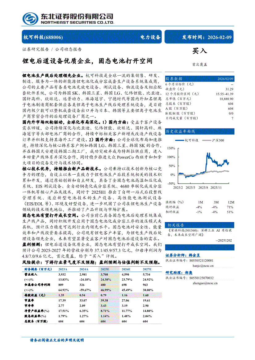 杭可科技:东北证券-杭可科技-688006-锂电后道设备优质企业,固态电池打开空间-260209