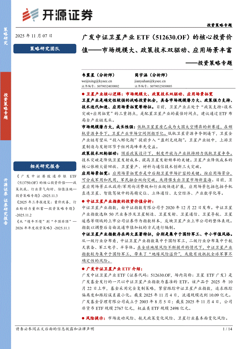 开源证券-投资策略专题:广发中证卫星产业ETF(512630.OF)的核心投资价值——市场规模大、政策技术双驱动、应用场景丰富-251107