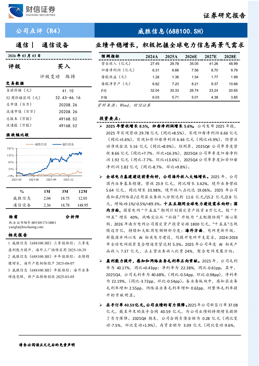 威胜信息:财信证券-威胜信息-688100-业绩平稳增长,积极把握全球电力信息高景气需求-260303