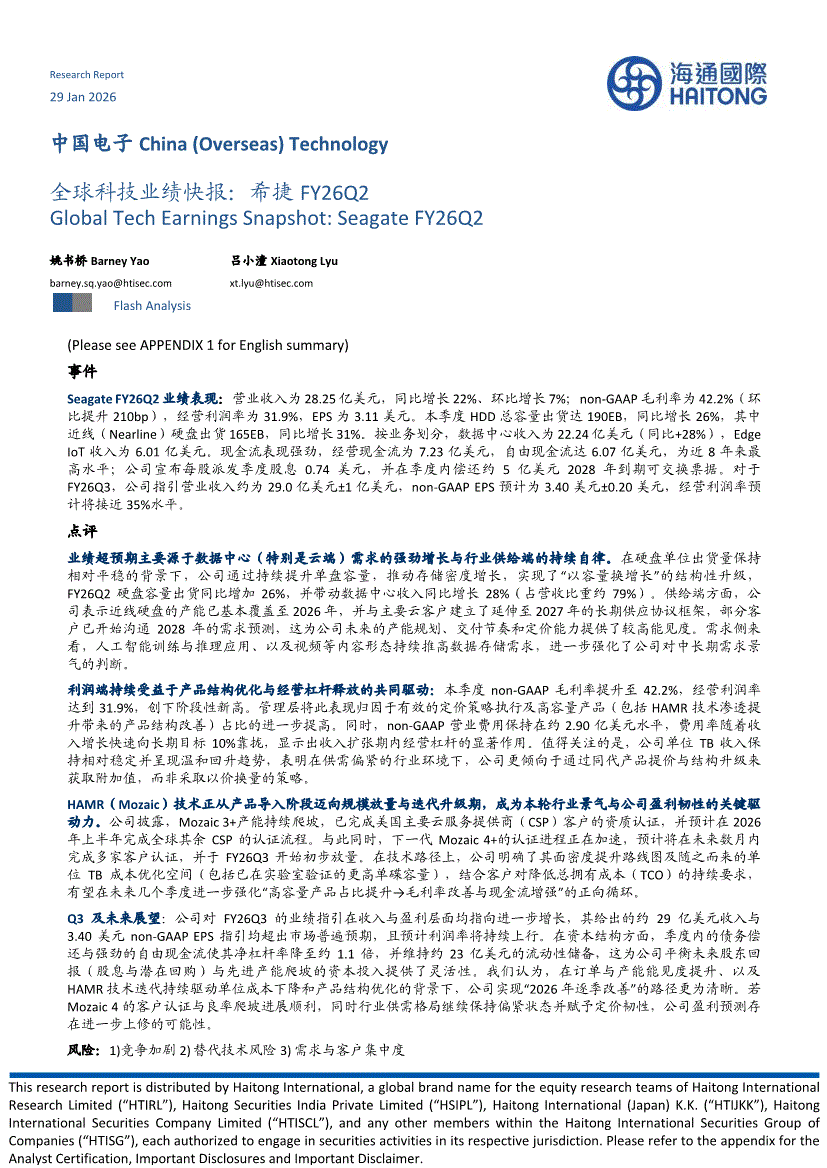 电子行业:海通国际-中国电子行业全球科技业绩快报:希捷FY26Q2-260129