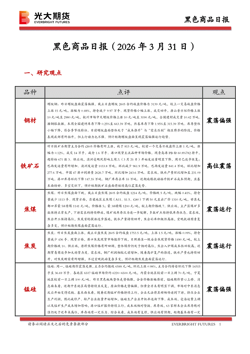 光大期货-光期黑色:铁矿石基差及价差监测日报-260331