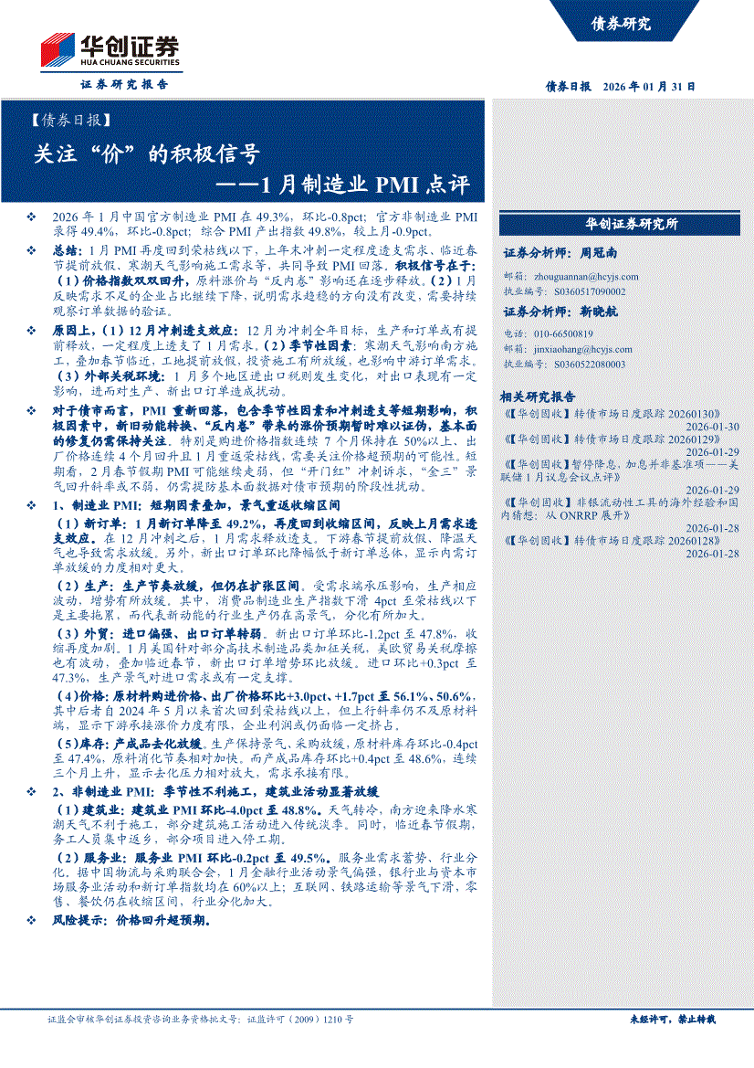 华创证券-1月制造业PMI点评:关注“价”的积极信号-260131