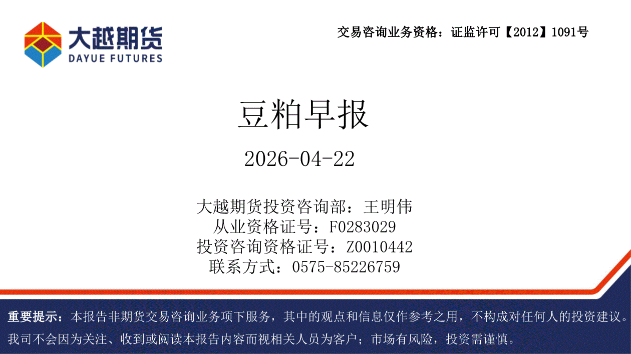 大越期货-豆粕周报:等待指引,豆粕低位震荡-260417
