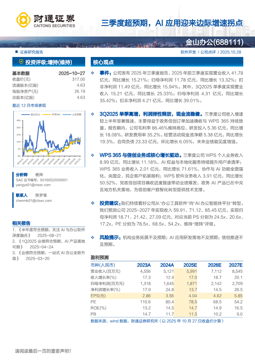 金山办公:财通证券-金山办公-688111-三季度超预期,AI应用迎来边际增速拐点-251028