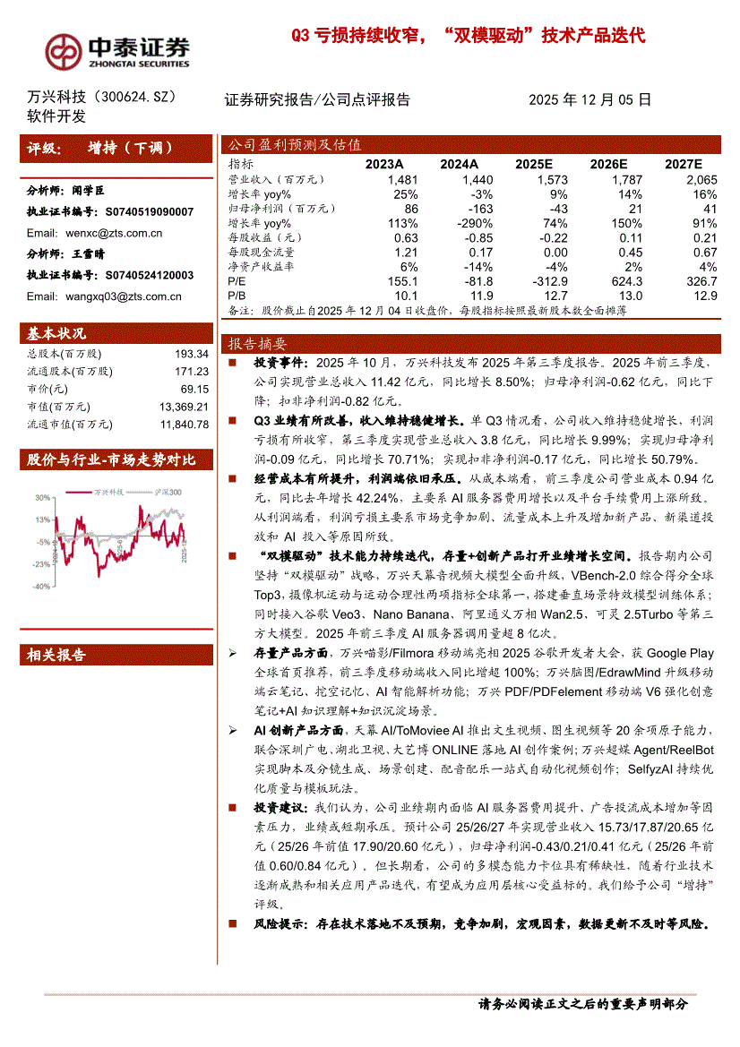 万兴科技:中泰证券-万兴科技-300624-Q3亏损持续收窄,“双模驱动”技术产品迭代-251205
