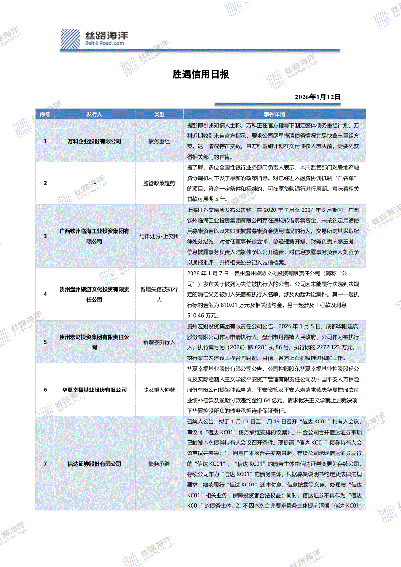 丝路海洋-胜遇信用日报-260112