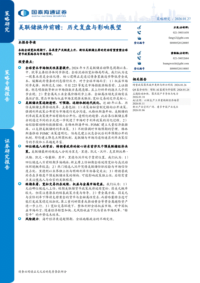 国泰海通证券-美联储换帅前瞻:历史复盘与影响展望-260127