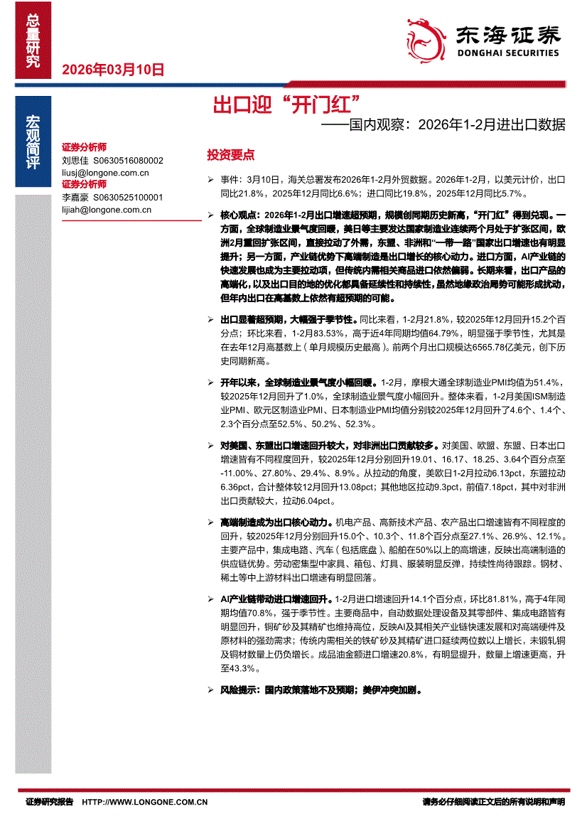 东海证券-国内观察:2026年1~2月进出口数据,出口迎“开门红”-260310