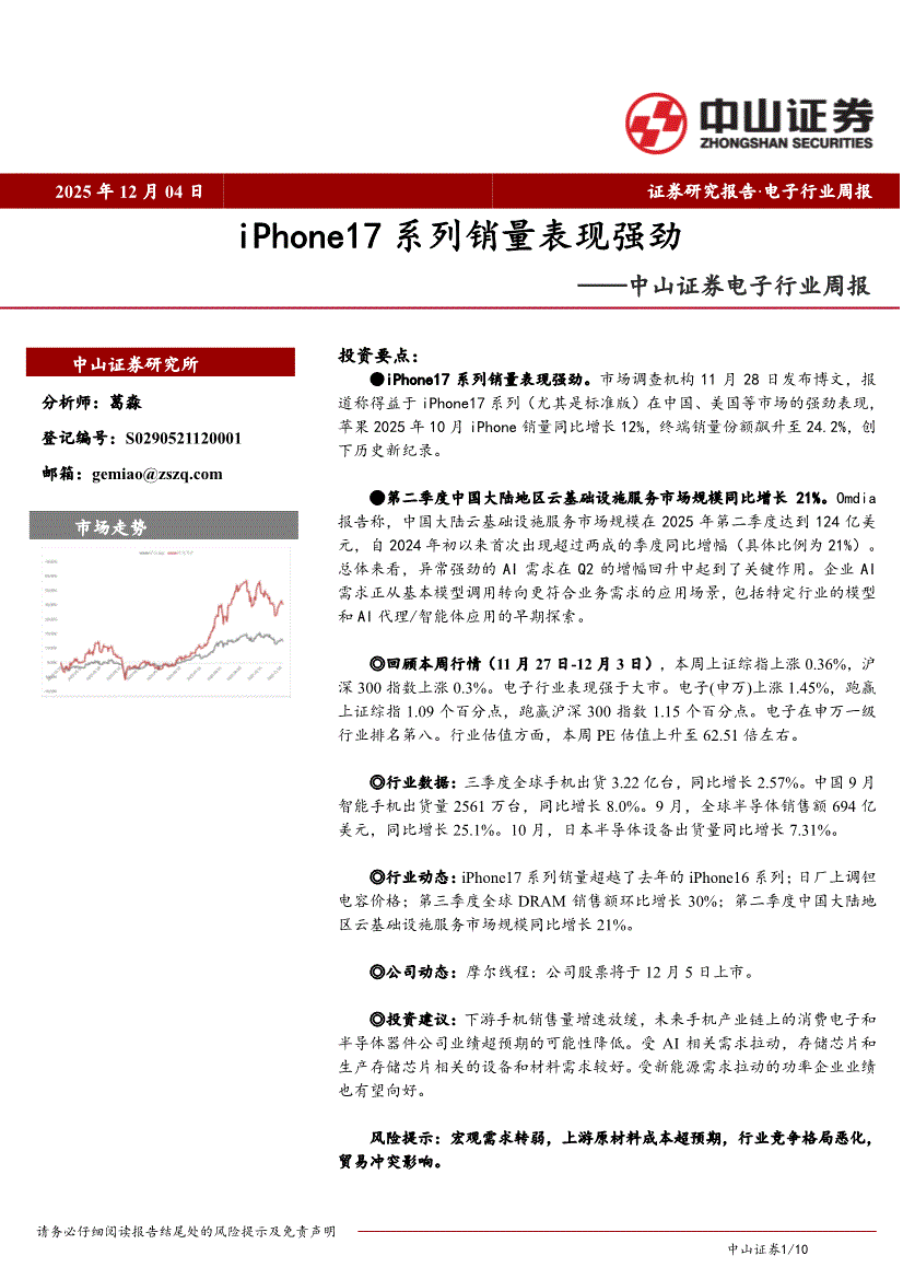 电子行业:中山证券-电子行业周报:iPhone17系列销量表现强劲-251204