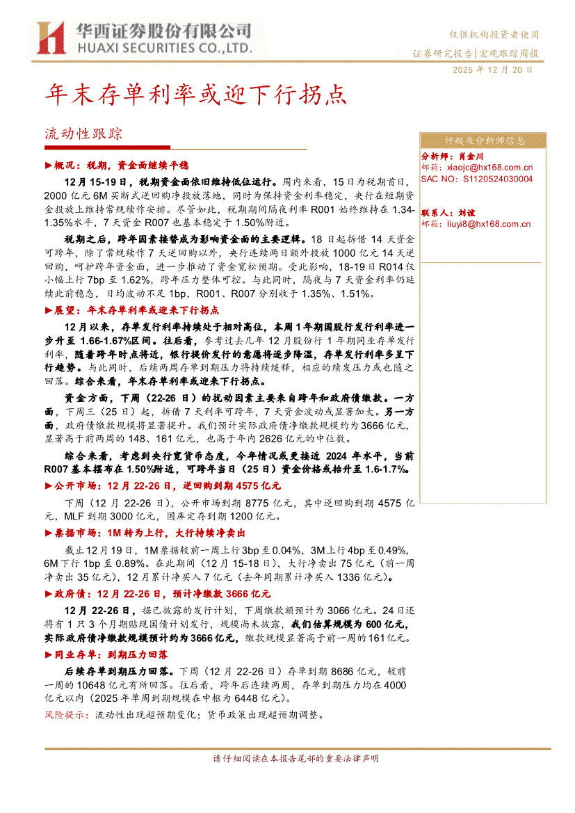 华西证券-流动性跟踪:年末存单利率或迎下行拐点-251220