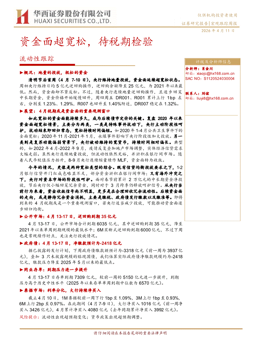 华西证券-流动性跟踪:资金面超宽松,待税期检验-260411