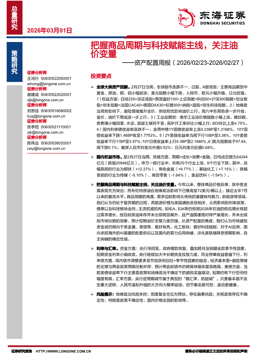 东海证券-资产配置周报:把握商品周期与科技赋能主线,关注油价变量-260301