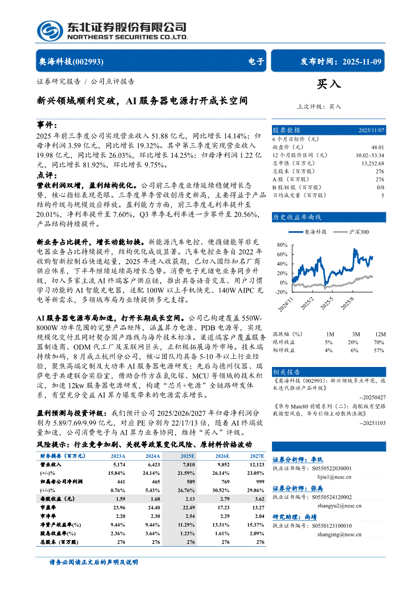 奥海科技:东北证券-奥海科技-002993-新兴领域顺利突破,AI服务器电源打开成长空间-251109