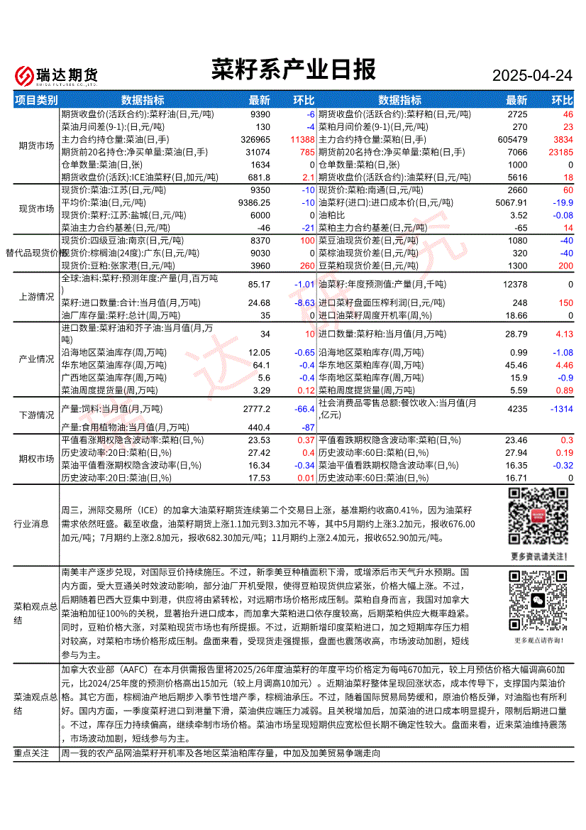 瑞达期货-菜籽类市场周报:海关严查非转进口,推动菜油低位反弹-251212