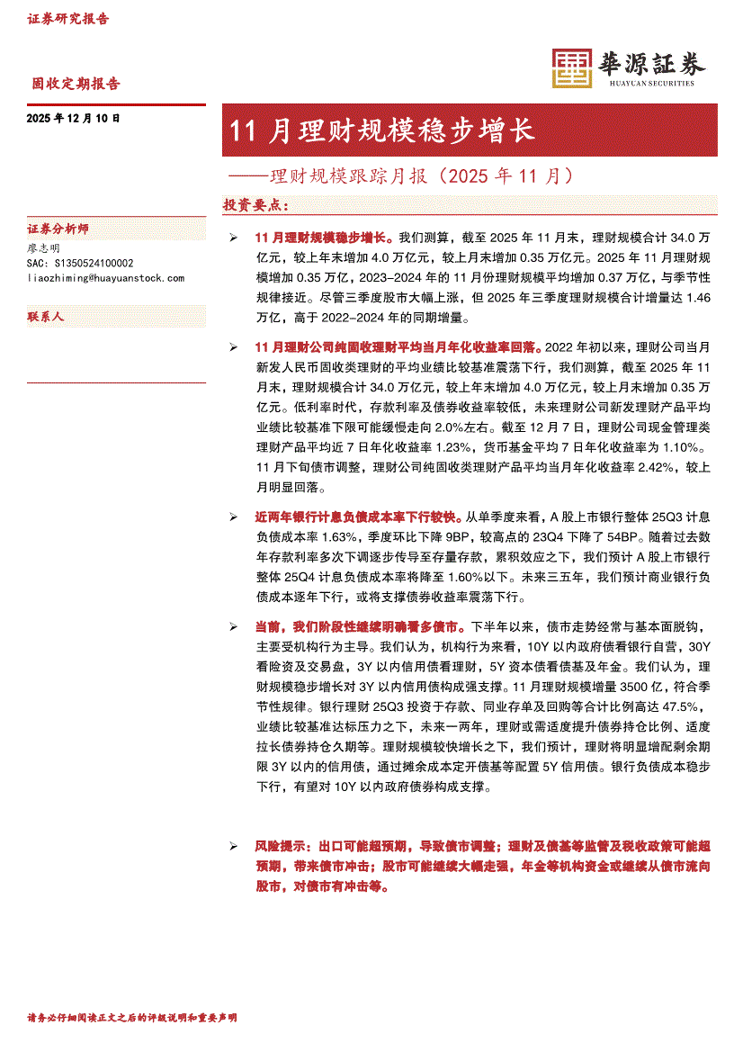 华源证券-理财规模跟踪月报(2025年11月):11月理财规模稳步增长-251210