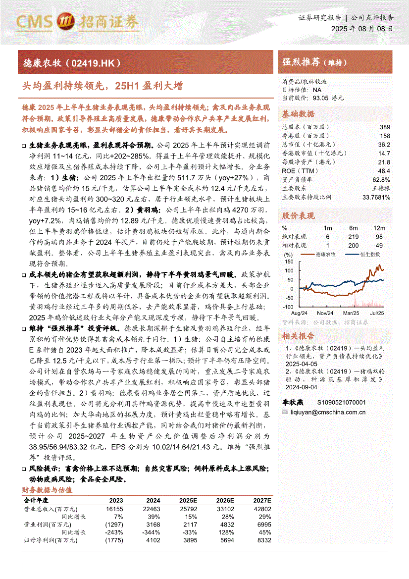 德康农牧:招商证券-德康农牧-2419.HK-头均盈利持续领先,25H1盈利大增-250808