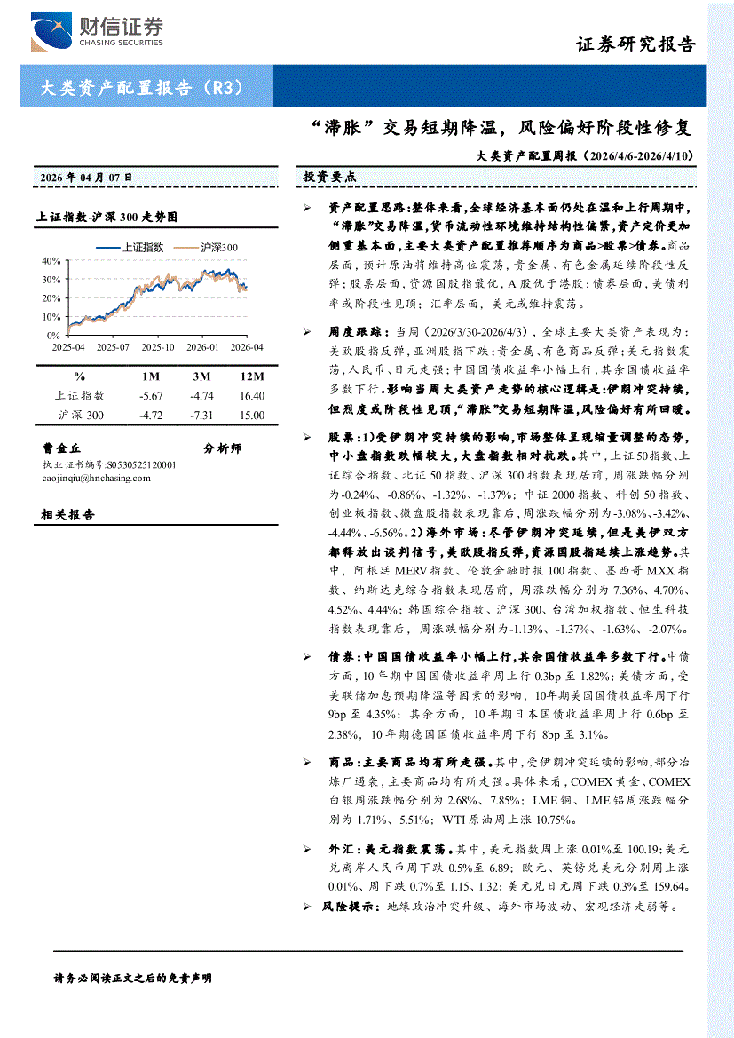 财信证券-大类资产配置周报:“滞胀”交易短期降温,风险偏好阶段性修复-260407
