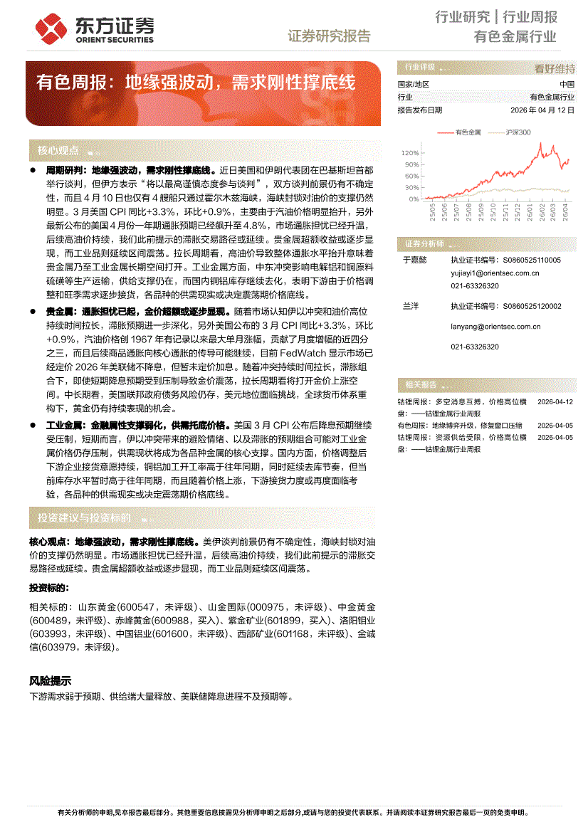 有色金属行业:东方证券-有色行业周报:地缘强波动,需求刚性撑底线-260412